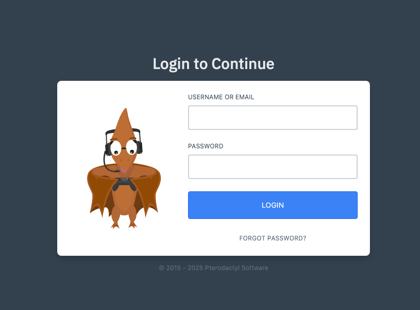 - 웹 브라우저에서 Pterodactyl 패널 주소로 이동합니다: