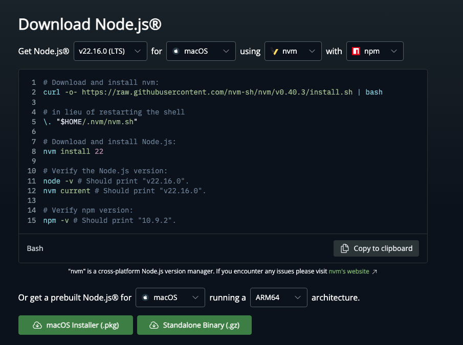 각각 vXX.X.X 하는 버전 정보가 뜨면 성공입니다. npm은 Node.js를 설치할 때 같이 딸려오는 패키지 매니저인데, 앞으로 라이브러리를 설치하거나 할 때 계속 사용하게 될 겁니다.