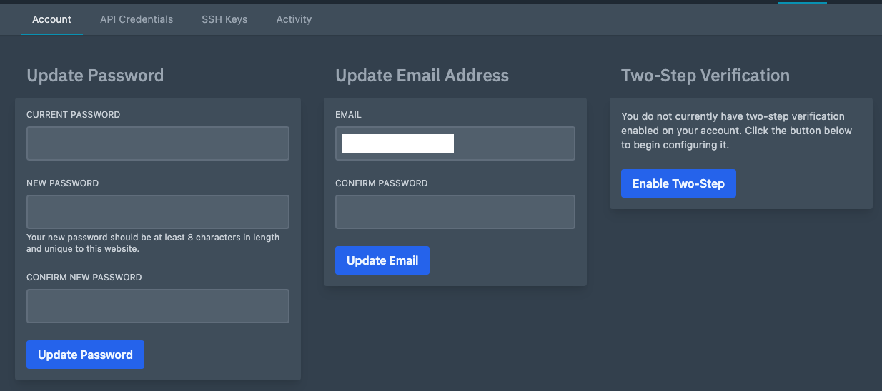Q: Pterodactyl 계정 비밀번호를 변경할 수 있나요?
