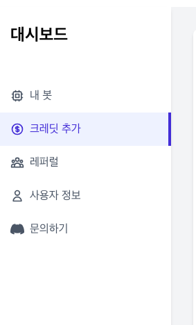 - 대시보드 왼쪽 사이드바에서 '크레딧 추가' 메뉴를 찾습니다.