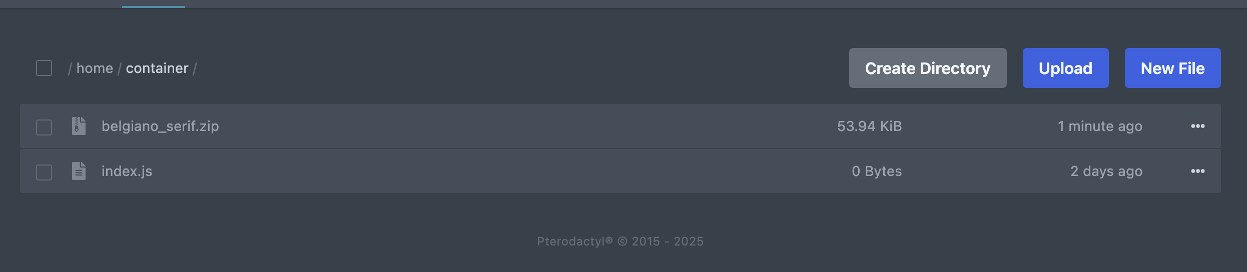 서버 관리 페이지에서 다음 단계를 따라 봇 파일을 업로드합니다: