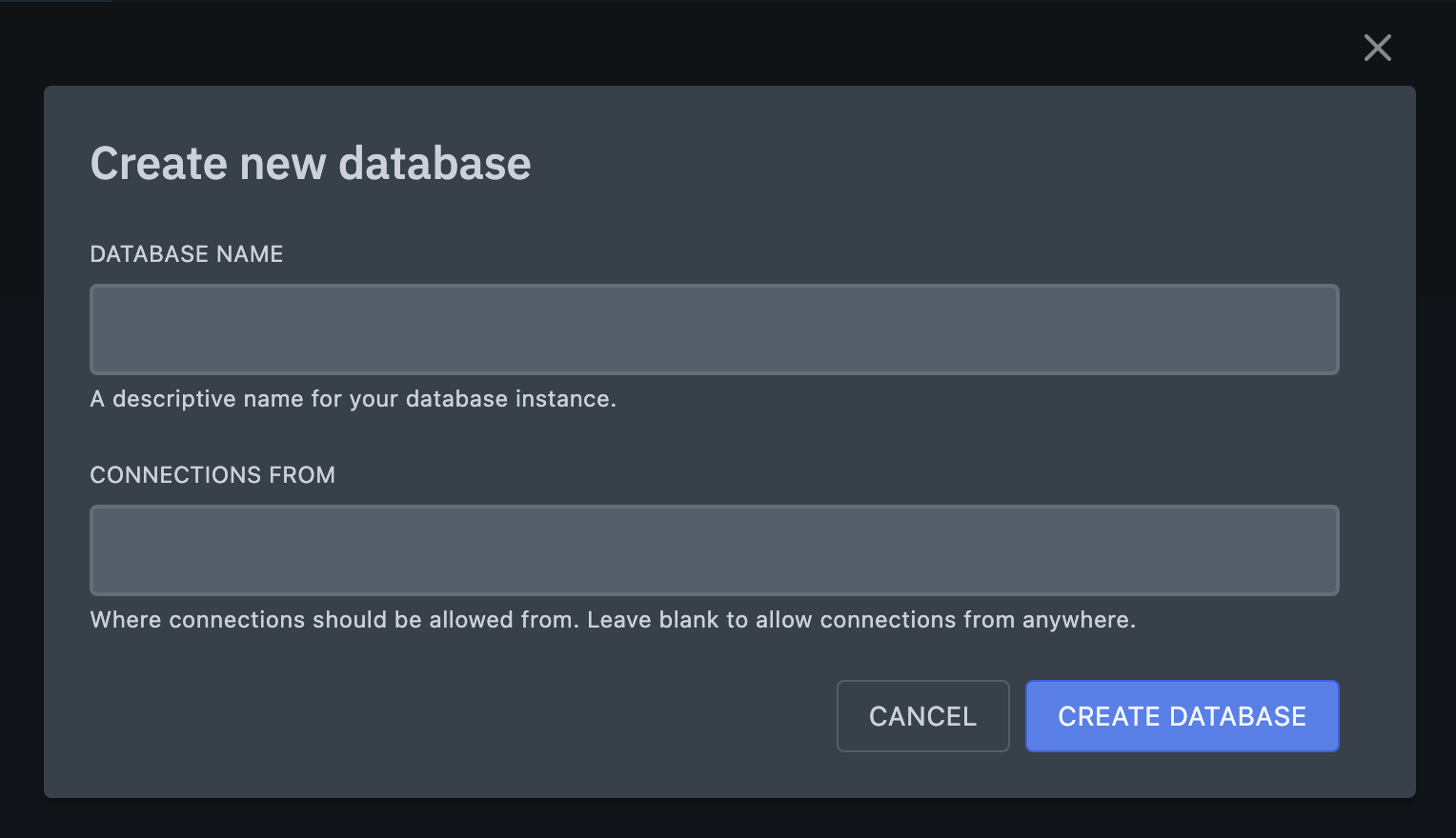 새 데이터베이스 생성 모달이 표시되면 다음 정보를 입력합니다: